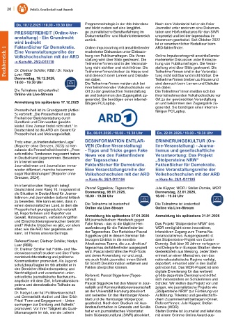 Pressefreiheit und Meinungsvielfalt. Do, 08.01.2026 / 18.00 - 19.30 Uhr Do, 22.01.2026 / 18.00 - 19.30 Uhr