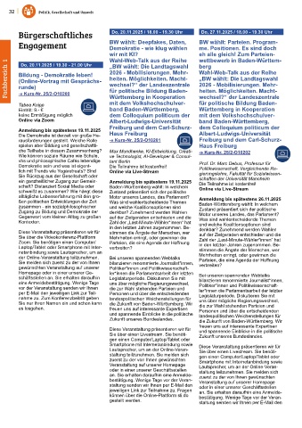 Bürgerschaftliches Do, 20.11.2025 / 18.00 - 19.30 Uhr Do, 27.11.2025 / 18.00 - 19.30 Uhr