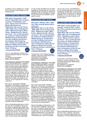 zentraler Politikfelder nach BW wählt: Wählen. Wen? War- Do, 22.01.2026 / 18.00 - 19.30 Uhr