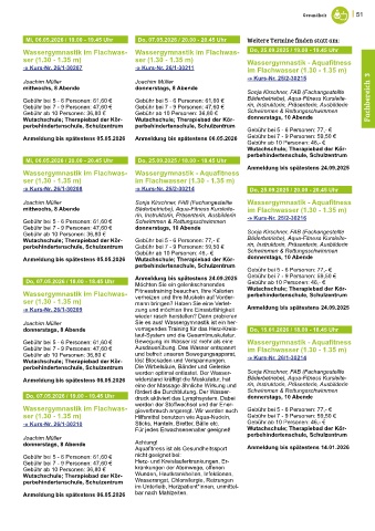 Wassergymnastik im Flachwas- gieverbrauch angeregt. Wir werden auch Gebühr bei 5 - 6 Personen: 77,- €