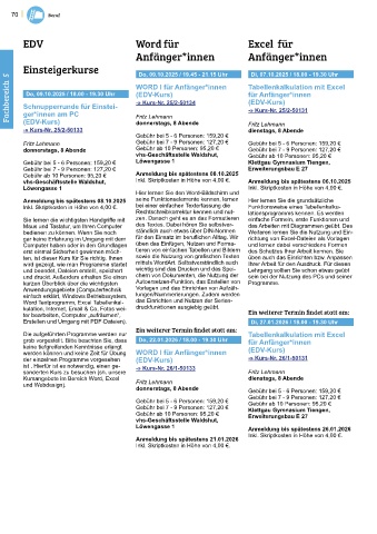 der einzelnen Programme vorgesehen (EDV-Kurs) -» Kurs-Nr. 26/1-50131