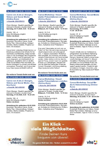 Kursinhalt: Grundkurs Canva, Social Kursinhalt: Präsentationsarten, Übergän- Anmeldung bis spätestens 02.12.2025