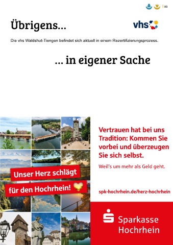 Die vhs Waldshut-Tiengen befindet sich aktuell in einem Rezertifizierungsprozess.